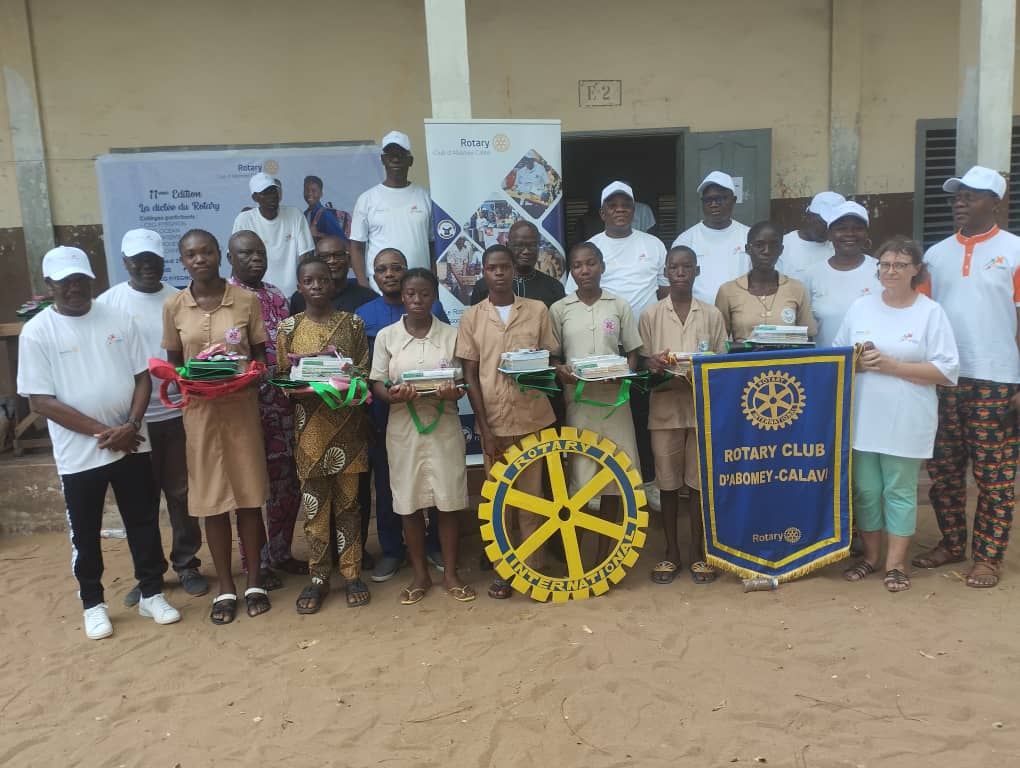 Le concours La dictée du Rotary est une initiative du Rotary club d’Abomey-Calavi qui oppose chaque année des élèves du premier cycle (de la 4ème et de la 3ème) et du second cycle (2nde, 1ère et Tle toutes séries confondues). Les candidats répartis dans cinq salles ont été soumis à une épreuve de dictée. À la fin, les 20 premiers ont été récompensés avec des prix variés. Il s’agit d’un ordinateur portatif, d’une tablette, d’un dictionnaire, de cahiers, de stylos et de divers gadgets. Cette récompense vise à encourager leur engagement et à valoriser leurs efforts. En lançant les épreuves, le directeur du CEG Fiyégnon a encouragé les candidats en les invitant à une pertinence pour mériter les récompenses. À l’issue de la compétition, Adikpeto Vihotogbe Fréjus, élève en classe de 1ère C au CEG l’Entente, a remporté le premier prix de cette 11ème du concours de dictée du Rotary Club d’Abomey-Calavi. Ému, il n’a pas manqué de partager son secret. « Je lisais des romans et je m’exerçais depuis que j’ai appris qu’il y a un tel concours », s’est-il confié. De son côté, Tanguy Théophane Lissanon, membre du comité d’organisation et membre du Rotary club d’Abomey-Calavi, a dit toute sa satisfaction quant aux résultats comparés aux éditions passées. « Par rapport au texte que les enfants ont composé aujourd’hui au nombre de fautes, on est bien satisfait. Ça prouve que ça vient progressivement », a-t-il déclaré. Selon ses explications, l’idée est partie d’un constat où les enfants commençaient à avoir un niveau beaucoup plus faible en faible. « Pour redonner goût à l’étude et ramener le niveau de français de nos élèves, notre club organise et en est à sa 11ème édition cette année, la dictée du Rotary », a indiqué Tanguy Lissanon. Cet événement comprend également un autre volet dénommé « Forum des métiers et orientation filière ». Des panélistes ont partagé leurs expériences professionnelles avec les élèves. Notons que cette compétition entre dans le cadre de l’un des axes stratégiques du Rotary qui est la lutte contre l’illettrisme et l’analphabétisme.