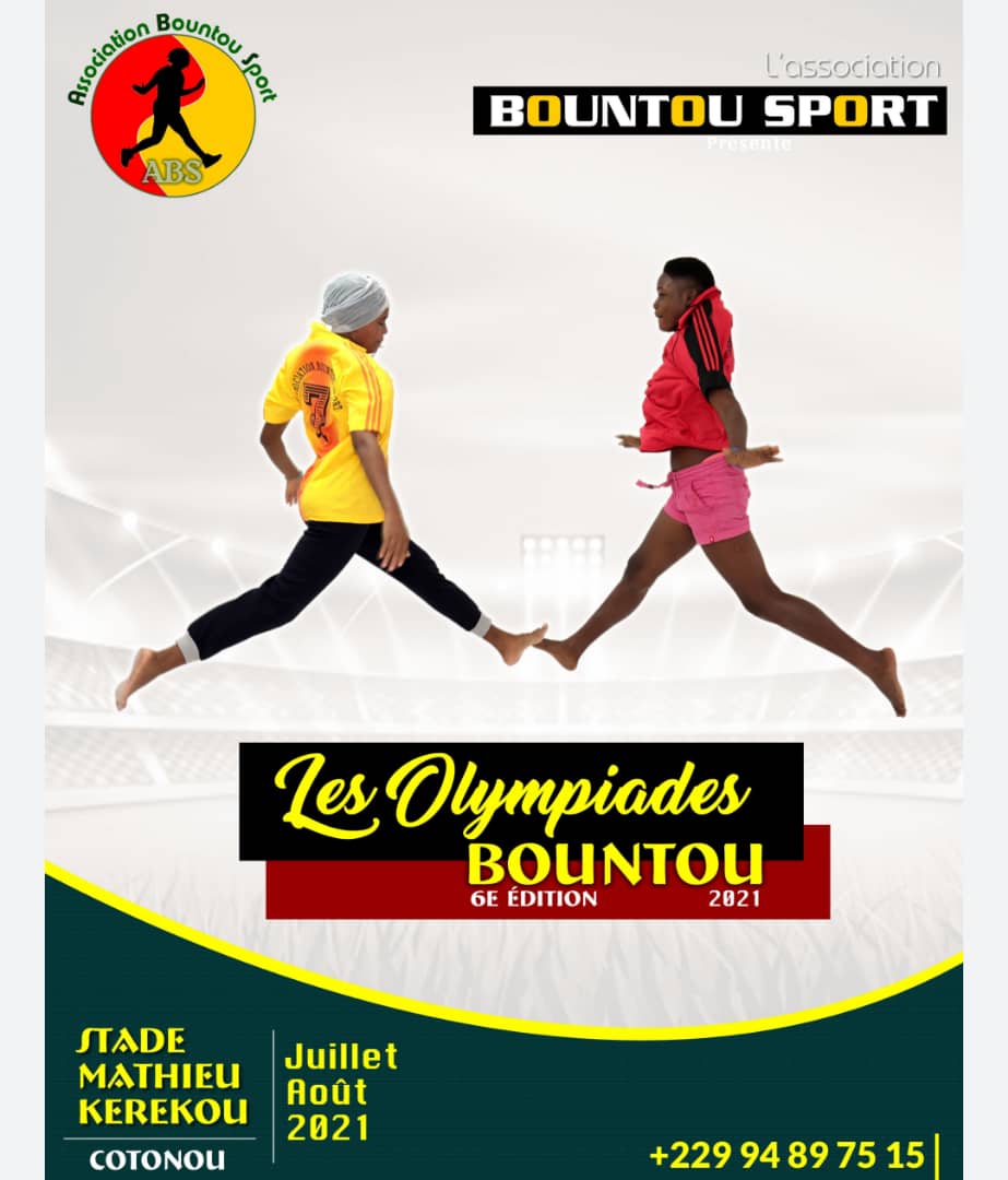 L’Association Bountou Sport présidée par Monique DOUGBADJI, organise du 28 au 29 Août 2021, la 6è édition des Olympiades BOUNTOU au Bénin.