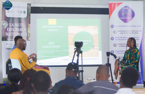 La 17è session du Café Environnement, un rendez-vous mensuel de partage et de réception des bonnes attitudes de gestion de l’environnement a fait une incursion dans les aires protégées béninoises avec Africain Parks. En charge la gestion des Aires protégées du Bénin notamment les parcs nationaux de Pendjari et W depuis 2020, Inès Kuassi et ses ambassadeurs du Café Environnement ont permis à African Parks de s’ouvrir au reste du monde pour les laisser découvrir l’écosystème dans nos parcs nationaux, leur vie et son maintien. Autour du café et des mets made in Bénin, Éric Hermann et Nazir Kouchélé, deux émissaires de African Parks sur le Café Environnement de ce jeudi 27 Juillet 2023, ont donné l’occasion aux ambassadeurs du Café Environnement de se faire une vue panoramique sur les activités assignées à African Parks, en singulier la conservation des aires protégées béninoises, leurs visions et objectifs.
