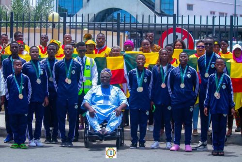 Composée de dix gymnastes, d’un coach, d’un juge, d’un médecin, d’un team manager et du président de la fédération béninoise de gymnastique (Fébégym) Isidore Gbaguidi, la délégation béninoise qui a pris part au dix-huitième championnat d’Aérobic de gymnastique aérobic au Caire en Egypte est rentrée au bercail dans la matinée de ce 16 septembre 2024. Accueilli à leur descente par les membres du conseil national des supporters du Bénin (CNS-B), les membres du bureau exécutif de la Fébégym et de quelques parents venus féliciter leurs enfants et la délégation pour cette prouesse réalisée, Isidore Gbaguidi a dans ses propos remercié les parents, les coaches, les athlètes et tous ceux qui ont travaillé afin que cette moisson soit bonne. « «Je suis un président heureux et très heureux et vous devrez déjà le constater à travers ces médailles que nous avons décrochées au Caire. Cela n’a pas été du tout facile car il y a des médailles d’argent qui sentent l’or parmi ces médailles que nous avons ici. Je remercie le CNS-B pour l’accueil qu’ils nous ont réservés et je profite de ce canal pour remercier le gouvernement béninois à travers le ministère des sports qui nous a accompagner afin que nous puissions effectuer cette expédition, ceci est le fruit d’une bonne collaboration entre notre fédération et les responsables du ministère des sports » »»a-t-il signifié. Il en a profité pour saluer la détermination et l’engagement des athlètes durant les cinq jours de compétitions. Pour rappel, ces athlètes qui ont pris part à cette compétition ont été sélectionnés suite à un camp international de gymnastique animé par les experts russes Vladislav Oskner et Marina Oskner et le Bénin a pris part à ces dix-huitièmes championnats d’Afrique aux côtés de neuf pays dont : le Maroc, la Tunisie, le Togo, l’Algérie, le Cap vert, l’Afrique du Sud, le Mali, l’Egypte (pays hôte) de la compétition.