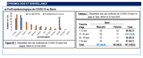 Le rapport de situation du ministère de la santé en matière de gestion de la Covid-19 au Bénin, à la date du 22 mai 2020, renseigne :