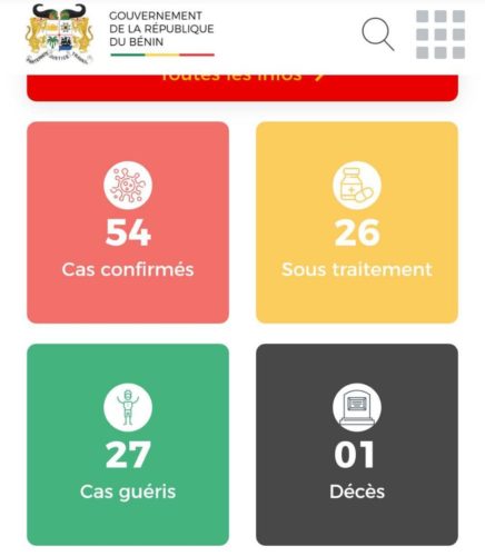 Avant d’y revenir, je voudrais préciser qu’à ce jour lundi 20 avril 2020, le Bénin compte au total 54 cas confirmés dont 40 quoique positifs au test de dépistage, ne présentent aucun signe de la maladie. Ces personnes sont isolées et prises en charge. 13 autres personnes porteuses de la maladie ne présentent pas de gravité particulière. Elles sont hospitalisées et déjà sous traitement. En outre, nous avons 1 décès et, parmi les 54 cas contrôlés positifs, nous avons 27 personnes guéries.