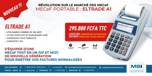 Dans le processus d’acquisition et d’utilisation des machines conformément aux exigences de la loi des finances gestion 2020 et du Code Général des Impôts, certains contribuables ont estimé que le modèle A3 est encombrant pour leur secteur dactivités ou nest pas accessible en termes de prix pour leur trésorerie. Cest ce qui a motivé la société MSI a innové dans ce sens afin de répondre aux attentes des contribuables. « Cet investissement important de la société MSI pour la conception et le développement de ce modèle A1 est la meilleure pour répondre aux attentes des entreprises », a fait savoir un responsable de la société MSI. Ainsi, à moins de quelques jours de la fin du délai de rigueur (fin mars 2020) accordé aux entreprises par ladministration fiscale pour se conformer à lutilisation obligatoire des Mecef pour délivrer la facture normalisée à leurs prestataires et clients, le nouveau modèle A1 de la Mecef est une véritable opportunité pour se conformer aux exigences de la DGI. Cest pour répondre aux obligations de la Direction générale des impôts que la Société MSI met à la disposition des contribuables, la nouvelle Machine électronique certifiée de facturation (Mecef) ELTRADE A1 DE bonne commodité pour son utilisation, et qui répond parfaitement aux caractéristiques techniques imposées par ladministration fiscale. Cette nouvelle machine, au regard de son paramétrage, de sa portabilité et de ses caractéristiques est une opportunité pour toutes les entreprises et sociétés notamment les sociétés pétrolières, les cimenteries, brasseries, restaurants et bien d’autres. La réforme des Mecef initiée par la Direction Générale des Impôts a donc atteint sa vitesse de croisière avec cette nouvelle machine de facturation électronique. Elle permet aux entreprises de respecter le dernier délai du 31 mars 2020 donné par la DGI, dacquérir et dinstaller la machine de facturation normalisée afin déviter des sanctions prévues par la loi. La nouvelle machine de la société MSI permet également entre autres aux entreprises, aux sociétés et structures, daméliorer leur comptabilité; davoir moins de redressements fiscaux relatifs aux dissimulations des chiffres d’affaires et une éventuelle baisse des taux d’imposition.