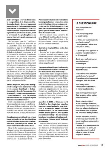 28 septembre 2020 +Photos JA Post navigation Précédent Jacques PARADIS se désole et appelle l’entreprise au respect des mesures prisesSuivant :ANSELME AMOUSSOU de la CSA-BENIN (la Fédération Nationale des Collectifs des Enseignants Pré-Insérés du Bénin) Laisser un commentaire Annuler la réponseVous devez vous connecter pour publier un commentaire. Voir aussi Actualités La Une Médias et inclusion financière au Bénin Le RJCIF créé, Adam HOUETENON élu Président 12 décembre 2025 Actualités Sports CAN MAROC 2025 : les 28 Guépards retenus par Rohr ! 12 décembre 2025 Actualités La Une Politique LES MINISTRES DES AFFAIRES ÉTRANGÈRES DU NIGÉRIA ET DU BÉNIN TIENNENT UNE CONFÉRENCE DE PRESSE CONJOINTE SUR LE RÉTABLISSEMENT DE LA GOUVERNANCE DÉMOCRATIQUE AU BÉNIN ET LA SÉCURITÉ RÉGIONALE 12 décembre 2025