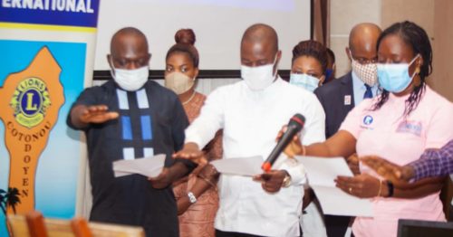 Le Lion Agapit Napoléon Maforikan en sa qualité de président de zone a eu l’honneur de présider avant cette passation de charge, l’intronisation de cinq nouveaux membres qui viennent agrandir l’effectif du club. De profils divers (journaliste, banquier, professeur d’université, gestionnaire), les nouveaux impétrants mus par le service, ont adhéré librement au club. La cérémonie a démarré par la minute de méditation et l’écoute de l’hymne Lions. Le serment synonyme de leur adhésion à la grande famille Lions a été reçu par Agapit Napoléon Maforikan en présence des officiels et membres du club. Les attributs et insignes Lions ont été remis aux quatre nouveaux membres en présence et avec la bénédiction de leurs parrains et marraine Eunice Loisel, Philippe Johnson et Magloire Dato. « Nous sommes particulièrement honorés d’avoir mérités la confiance de nos parrains qui nous ont donné l’occasion d’être accueillis, formés, puis, aujourd’hui, intronisés, en qualité de membres de la prestigieuse organisation qu’est le Lions Club International », dira Chantal Accrombessi, porte-parole des nouveaux Lions. Aussi, rappelle-t-elle aux officiels du Club, dans son adresse, qu’avant d’en arriver là, les impétrants ont durant cinq mois, pris part à plusieurs sessions de formation axées sur les thématiques comme Histoire et Organisation des Lions Clubs, la structure, le fonctionnement et le rôle des officiels du club, l’Effectif au sein du club Lions, les œuvres sociales et l’Éthique du Lions. « Ces formations ont été délivrées par des aînés, pétris d’expériences et d’engagement, dans une ambiance très chaleureuse, quasi festive », note-t-elle. Ce fut réellement l’occasion de connaître le lionnisme et de nous familiariser avec ses idéaux, indique Chantal Accrombessi. « Au terme de ce processus, nous retenons surtout la sentence suivante : Personne ne t’oblige à être Lions, mais être Lions oblige », fait savoir la porte-parole. A cette sentence, sont associées des valeurs d’exemplarité dans tous ses milieux de vie, la générosité dans son don de soi, l’objectivité dans son jugement, la lucidité et l’efficacité dans le choix des actions à mener, révèle-t-elle dans son adresse. « Le défi que nous comptons relever à vos côtés, c’est simplement rendre plus visible le Lion Club en général et le Club Cotonou Doyen en particulier », conclura Chantal Accrombessi au terme de son mot. Lions, et fiers, ils le sont tous désormais, parés qu’ils étaient à l’occasion, mais surtout très engagés pour la cause du service.