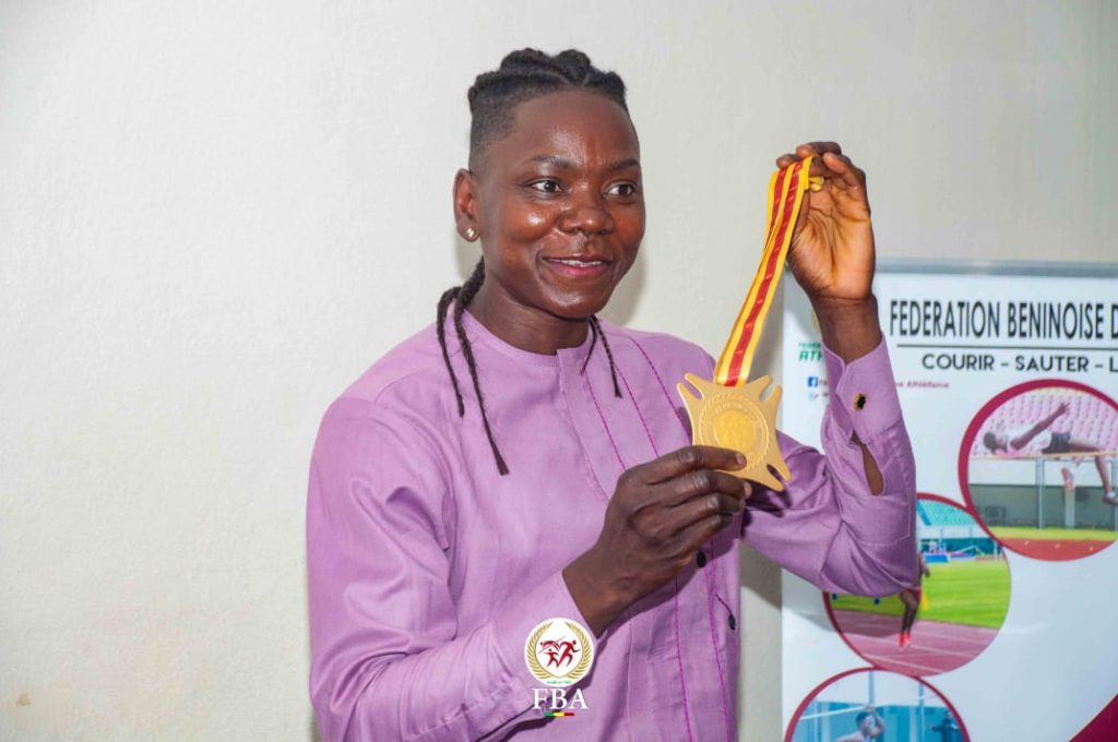 Devenue, désormais, une tradition pour les membres du comité exécutif de la Fédération béninoise d’athlétisme (Fba) à sa tête Viérin Dégon d’honorer les athlètes qui ont fait rayonner le drapeau béninois lors des différentes compétitions afin qu’elles puissent communier avec les hommes de la presse une fois sur le sol béninois a été une fois encore perpétuée. Ainsi, dans la journée du 9 avril 2024, l’athlète Odile Ahouanwanou médaillé d’or en heptathlon aux derniers jeux africains d’Accra 2024 a procédé au même exercice qu’a eu à faire Noëlie Yarigo il y a quelques jours devant les professionnels des médias. Heureuse de retrouver sa terre natale avec cette médaille décrochée à Accra, elle a témoigné toute sa gratitude aux membres du comité exécutif de la Fba qui n’ont ménagé aucun effort pour que l’athlétisme béninois puisse commencer par écrit son nom. « Je suis vraiment satisfaite de ce titre même si je ne suis pas arrivée à battre mon propre record » a-t-elle déclarée dans ces propos liminaires avant de remercier la presse et tous les acteurs qui les accompagnent. « Je suis toujours motivée à remporter davantage de médaille pour mon pays, quelle que soit la couleur et chaque fois quand je suis sur les pistes je ne pense qu’à cela, c’est mon rêve et je me mettrai encore davantage au travail pour de nouveaux challenges ».