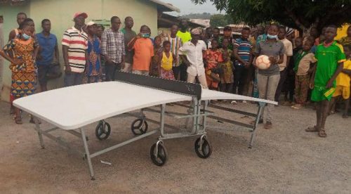 C’est en marge de la fête identitaire d’Awaya (l’un des quatre villages de l’arrondissement de Gbaffo, dans la commune de Dassa-Zoumè) que la FéBéTeq a décidé de remettre à l’Association sportive d’Awaya, des ballons et une table Lite facilement transportable grâce à ses quatre grandes roues de diamètre 250 millimètres.