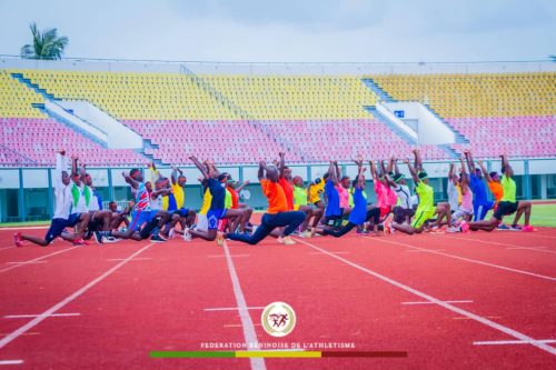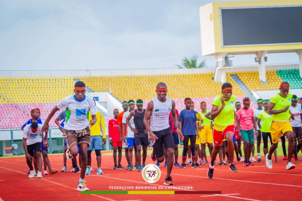 Dans le cadre de son projet de développement de l’athlétisme à la base, une cinquantaine d’athlètes ont été conviés le lundi 3 avril 2023 sur le stade Général Mathieu Kérékou pour participer à un camp de préparation afin de les préparer pour défendre vaillamment les couleurs nationales lors des compétitions à venir. Ainsi, sous la houlette du directeur technique national Zéphirin Hounkènou et de plusieurs autres entraîneurs, ces jeunes athlètes vont bénéficier pendant les dix jours de ce camp, des séances de renforcement et de préparation afin de permettre aux athlètes qui iront défendre les couleurs nationales du 29 avril au 3 mai 2023 lors des championnats d’Afrique U-18 et U-20 du côté de Lusaka en Zambie et de ceux qui iront à Tamalé au Ghana dans une semaine lors d’une compétition régionale d’avoir l’expérience qu’il faut pour hisser le drapeau béninois. Comme lors du précèdent camp organisé du côté de Porto-Novo fin décembre 2022, d’autres athlètes ont été invités outres ceux qui doivent représenter le Bénin au camp dans le cadre du projet de développement des athlètes. C’est pourquoi nous avons un effectif de cinquante athlètes signale le directeur technique national. «Nous avons choisi ces athlètes sur la base des derniers résultats obtenus des compétitions organisées par la fédération, les championnats scolaires et du projet sport au féminin organisé par l’Ambassade de France près du Bénin sous la supervision du ministère des sports » a-t-il déclaré. Rappelons que parmi les six athlètes qui se préparent pour les compétitions à venir (championnats d’Afrique U-18 et U-20 du côté de Lusaka en Zambie et Tamalé au Ghana) que dix-sept garçons et trente filles prennent part par à ce camp dont les premières séances ont démarrés sous l’œil vigilant du président Viérin Dégon qui a promis suivre ces athlètes pendant ce camp afin que le drapeau béninois flotte lors de ces différentes compétitions et que la relève soit assurée au sein de la Fédération béninoise d’athlétisme (Fba).
