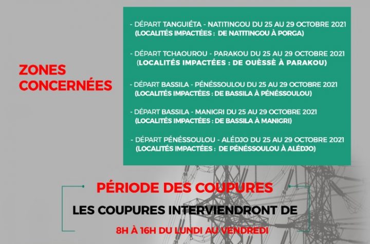 Actualités Société ALERTE INFO SBEE : TRAVAUX DE RÉHABILITATION ET DU RENFORCEMENT DU RÉSEAU NORD BENIN 25 octobre 2021