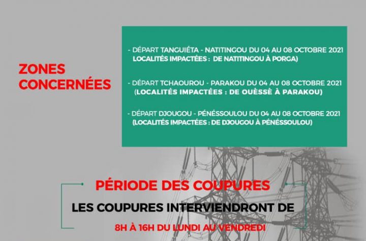 Actualités Société ALERTE INFO SBEE : TRAVAUX DE RÉHABILITATION ET DU RENFORCEMENT DU RÉSEAU NORD BENIN 5 octobre 2021