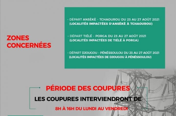 Actualités Société ALERTE INFO SBEE : TRAVAUX DE RÉHABILITATION ET DU RENFORCEMENT DU RÉSEAU NORD BENIN 28 août 2021