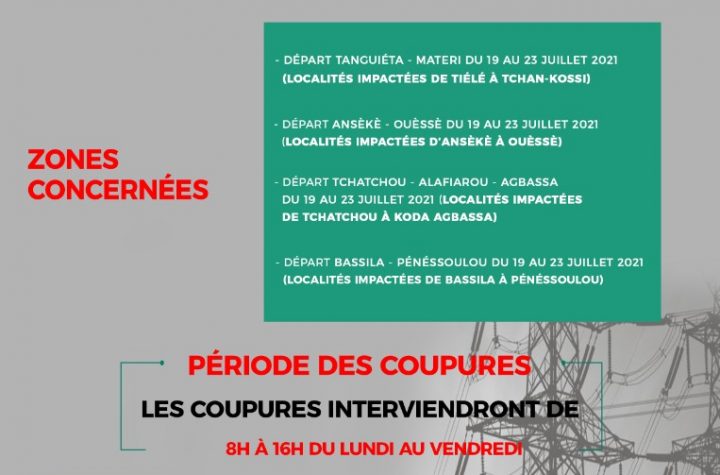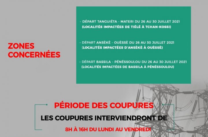 Actualités Société ALERTE INFO SBEE : TRAVAUX DE RÉHABILITATION ET DU RENFORCEMENT DU RÉSEAU NORD BENIN 26 juillet 2021
