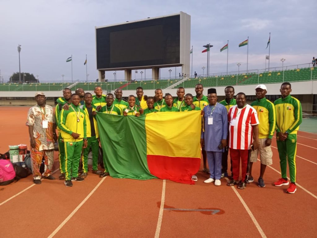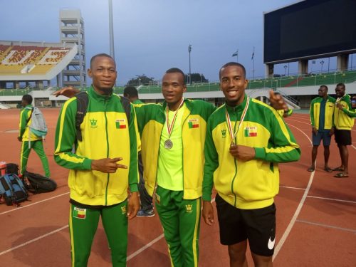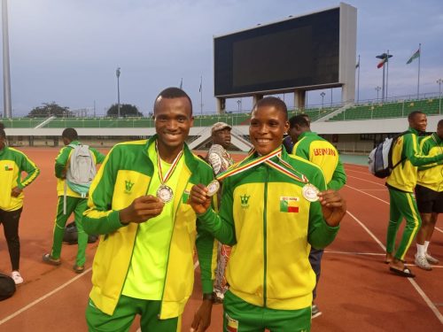 Quatorze athlètes béninois ont pris part à l’édition 2023 du championnat Ouest-Africains d’Athlétisme « Lomé 2023 » avec pour objectif de mieux se positionner dans le classement final. Ainsi, pendant deux jours de compétitions, ils se sont donnés afin de défendre vaillamment les couleurs nationales. Et en termes de breloques glanées lors de cette compétition, ils reviennent au bercail avec huit médailles dont deux en or décrochés au 1500 et 800m par Odette Sanhouekoua, deux en argent par Brigitte Tchédé au lancer de disque et Sylvain Azonhin 1500 hommes et quatre médailles en bronze obtenues respectivement par Roméo N’tia en saut en longueur, Géraud Houéssou 400m Haies, Relais 4×100 Hommes et Romaric Houénou lancer de javelot. Pour cette compétition,