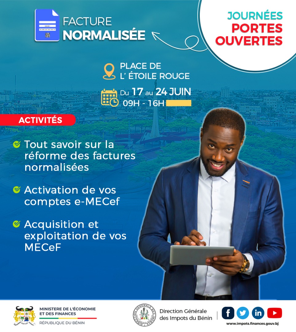 Les chefs d’entreprise et opérateurs économiques concernés ont la journée de ce jeudi 24 juin 2021 pour pour se rendre à la place de l’étoile rouge et profiter de la plateforme des journées portes ouvertes pour tout savoir sur la réforme et se mettre à jour vis-à-vis de la loi et des règlements qui fondent la réforme des factures normalisées