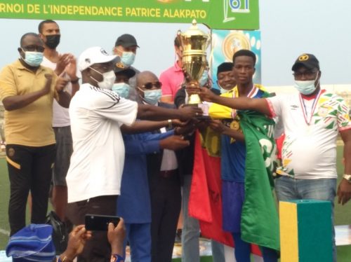 Organisé pour accompagner le gouvernement béninois dans sa politique de promotion du football à la base, tel est l’objectif de la première édition du tournoi de l’indépendance doté du trophée ‘Patrice Alakpato « . Démarré il y a un mois, la première édition de ce tournoi qui a regroupé tous les treize arrondissements de la ville de Cotonou a connu son épilogue le 1er août dernier sur les installations du stade René Pleven d’Akpakpa. Et pour cette finale, l’équipe du 1er arrondissement recevait son homologue du 8 ème arrondissement. Sans round d’observation, les vingt-deux acteurs se sont lancés à l’abordage essayant d’ouvrir très tôt le score. Match équilibré jusqu’à l’ouverture du score d’ Ebenezer Sohè à la 37ème minutes de jeu. 1but à 0 pour le 1er arrondissement, c’est ce score que l’officiel du match Amour Dossougouin et ses assistants renvoient les deux équipes au vestiaire. Du retour des vestiaires, et sur les consignes de Anselme Zinsou coach du 8ème arrondissement, l’équipe du huitième revient dans la partie. Mais c’était sans compter sur les poulains de paterne Azoglédadji qui comme en première partie du jeu ont pris très tôt le match à leur avantage. Et en seconde période juste trois minutes ont suffit pour que l’équipe du premier arrondissement double le score par l’entremise de Alassane Moudachirou et de Razack Amadou qui porte le score à 3buts à 0. Sans surprise, l’équipe du premier arrondissement décroche ainsi le trophée de la première édition du tournoi » Patrice Alakpato « .Fier du comportement de l’ensemble des arrondissements de la ville de Cotonou, patrice Alakpato est très heureux de l’initiative et « Je suis vraiment ému. Au lancement et à la clôture, j’ai vu des autorités autour de moi. Je suis vraiment comblé de joie. Les jeunes ont assuré le spectacle, s’est réjoui le promoteur Patrice Alakpato ». Rappelons que avant cette grande finale, que le match de classement a été joué entre l’équipe du 3ème arrondissement et son homologue du 12ème, victoire de l’équipe du troisième arrondissement sur le score de 3 buts à 2 avec la promesse du promoteur de récidiver l’année prochaine.