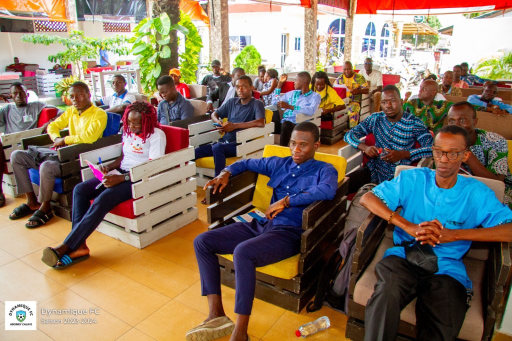 Le patron du staff technique de l’équipe de la cité-dortoir « Dynamique FC » Napoléon Simè entouré des autres membres du staff technique a animé le jeudi 23 novembre 2023 dans les locaux d’un restaurant de la commune d’Abomey-Calavi une conférence de presse à quelques jours du démarrage du championnat national de football féminin. Objectif, livré aux professionnels des médias, amoureux et sympathisants du club les ambitions de l’équipe qu’il conduira cette saison.