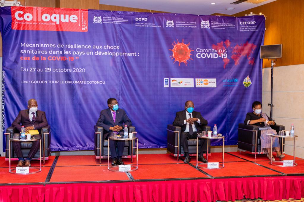 Ministre du plan et du développement Abdoulaye Bio Tchané rappelant le thème central du colloque informe que cela tire son essence dans la situation de la pandémie. Il n’est pas évident de voir les partenaires, société civile, chercheurs ensemble pour discuter autour du développement. Il informe qu’aujourd’hui à l’instar de la statistique mondiale sur la pandémie, le Bénin a recensé 2557 cas pour 41 décès. Pour le ministre, le Bénin fait une gestion efficace de la pandémie. Il s’est par ceci distingué pour l’efficacité de son système sanitaire. « Ce colloque nous offre une grande opportunité. Elle permet d’offrir aux décideurs des moyens efficaces pour des décisions de ripostes », a souligné le ministre.