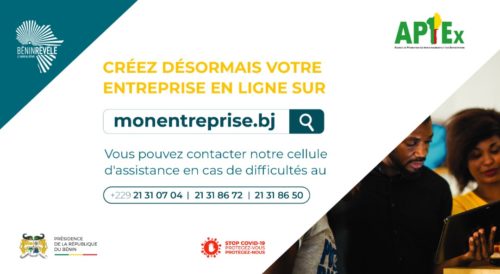 Depuis ce lundi 18 mai 2020, il est désormais possible de créer son entreprise et d’effectuer toutes les formalités en ligne à Abomey-Calavi et à Porto Novo sans avoir à se déplacer à l’Agence de Promotion des Investissements et des Exportations (APIEx). Il vous suffit juste de vous rendre sur le www.monentreprise.bj et en quelques clics, le tour est joué. Cette plateforme a été mise officiellement en service par le Directeur Général de l’APIEx, Monsieur Laurent GANGBES.