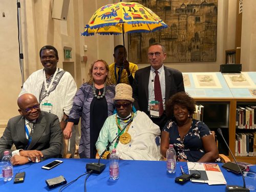 Dans une tenue d’apparat qui force l’admiration de tous les participants, le chef suprême Vaudou a comblé toutes les attentes, malgré les fatigues du voyage qui lui a permis de rejoindre l’Italie. Au cours de cet évènement, le 11ième Daagbo Hounon a rencontré plusieurs chefs religieux et des représentants politiques et diplomatiques des pays occidentaux, avant de prendre part à la discussion intitulée : «Afrique et Europe; baromètre contre la violence religieuse », à laquelle participaient aussi, l’émissaire spéciale de l’Union Européenne pour le Sahel, S.E. Émanuela Claudia Del Re, le Chef de Cabinet du Ministre Italien de l’intérieur, ainsi que Monsieur Stefano Manservisi, ancien directeur général de la coopération internationale et du développement de la Commission Européenne.