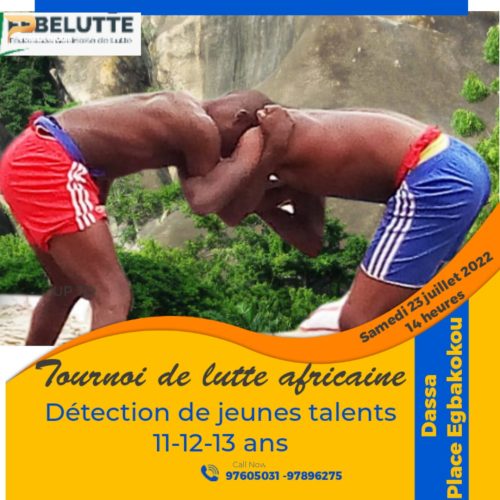 Initié par la Fédération béninoise de lutte à sa tête Yves Azifan en collaboration avec les clubs et associations affiliées et associations sportives, la tournée nationale de détection des jeunes talents en lutte des moins de 14ans démarre ce samedi 23juillet 2022 dans la commune de Dassa Zoumè plus précisément à la place Egbakokou.