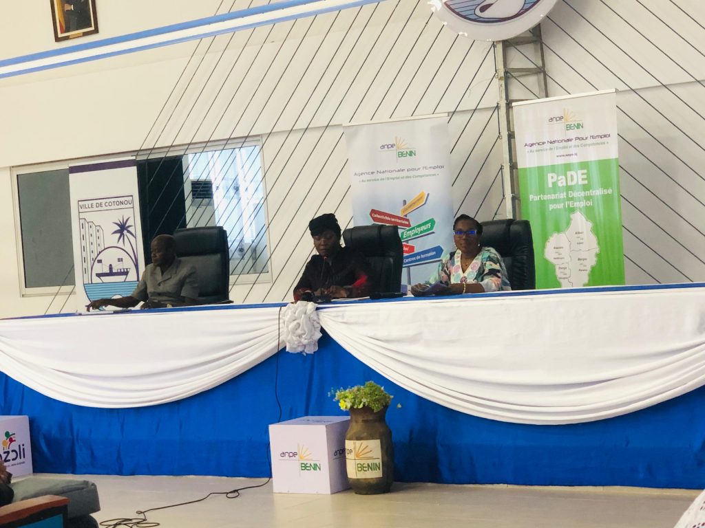 Réfléchir ensemble sur les défis de l’insertion professionnelle et du développement de l’emploi local au Bénin, tel ont été l’essence de la rencontre des entrepreneurs avec la Mairie de Cotonou et l’AnpE. Concentrée autour de la question « Quels profils pour quels emplois ? Construire l’adéquation entre l’offre et la demande sur le marché du travail », cette rencontre qui a eu lieu dans la salle de mariage de la mairie de Cotonou le 17 octobre a réuni les entrepreneurs, les jeunes, les représentants de la Mairie et les représentants de l’AnpE.
