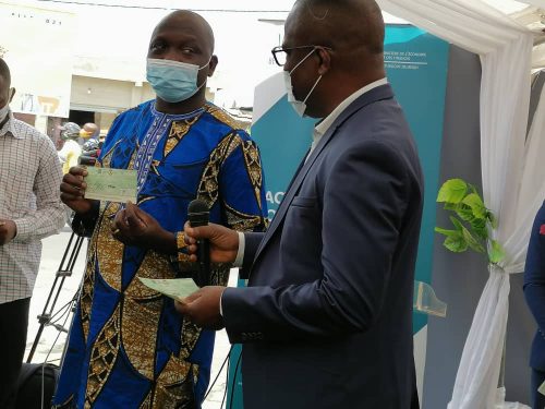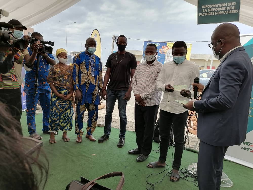 Remise de lots aux consommateurs gagnants de la tombola facture normalisée sur la place de l’étoile rouge dans le cadre des activités des journées portes ouvertes sur la réforme de la facture normalisée. Au total 28 gagnants ont reçu des chèques du trésor public de 100000 à 200000. Les mêmes gagnants peuvent gagner au tirage lune des voitures neuves de 2500000 chacune exposées à la place de l’étoile. Faites le geste propice en exigeant et en conservant votre facture normalisée pour faire. La facture normalisée est un outil de nonne gouvernance des entreprises, de la protection des droits du consommateur et le développement de notre nation à travers la TVA payée par les populations pour les constructions des écoles, hôpitaux, routes, universités…