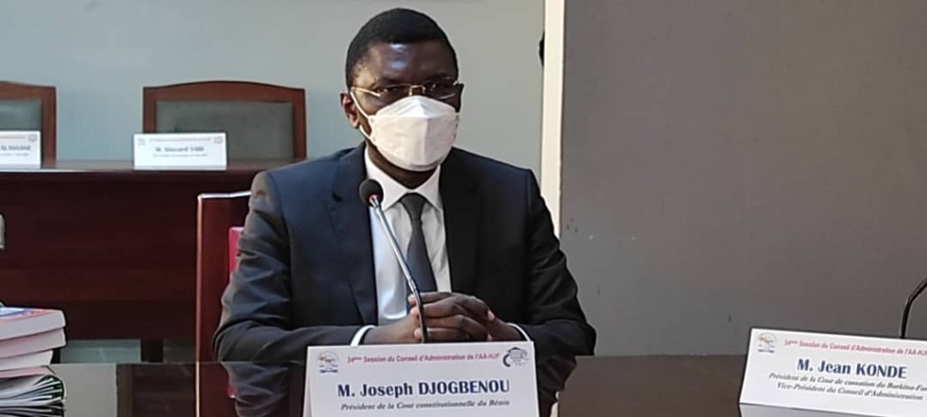 Le Président de la Cour constitutionnelle a pris part ce lundi 20 décembre 2021 à Porto-Novo à l’ouverture de la 24e session du conseil d’administration de l’Association africaine des hautes juridictions francophones (AAHJF). Le Professeur Joseph Fifamin DJOGBENOU répondait ainsi à l’invitation du Président de la Cour suprême du Bénin et président du Conseil d’administration de l’AAHJF, Victor Dassi Adossou.