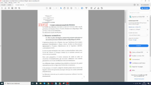 + COMMUNIQUE CONSEIL DES MINISTRE