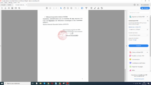 Présidente, cumulativement avec ses fonctions de juge assesseur à la Cour de Répression des Infractions économiques et du Terrorisme (CRIET)