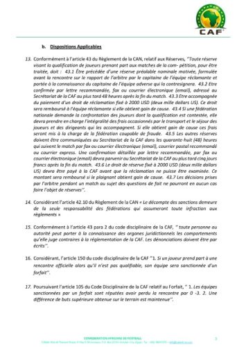 La décision du jury disciplinaire sanctionne le Rwanda de forfait le match de la 4è journée des éliminatoires de la CAN qui l’a opposé au Bénin et déclare le match perdu par pénalité 3-0. Le Bénin gagne ainsi trois points + 3 sur tapis vert et devient désormais le dauphin du Sénégal dans la poule L avec 4 points -3.