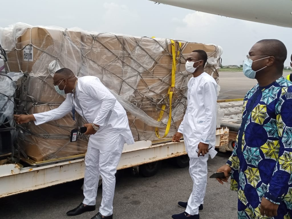 Le Bénin vient de recevoir un important lot de matériels médicaux composé de 06 millions de masques faciaux, des médicaments et du matériel de protection pour le personnel soignant, ce lundi 13 avril 2020 à l’aéroport de Cotonou.