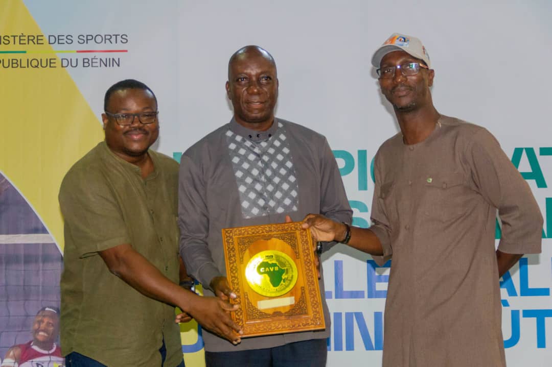 ? Le Président El Hadji Ali Yaro a été distingué par la Présidente de la Confédération africaine de volleyball (Cavb) pour service rendu au volleyball sous régional et pour avoir hissé le volleyball béninois au niveau actuel. Une distinction remise par le Président de la Fédération ivoirienne de volleyball, Pascal Whadja.