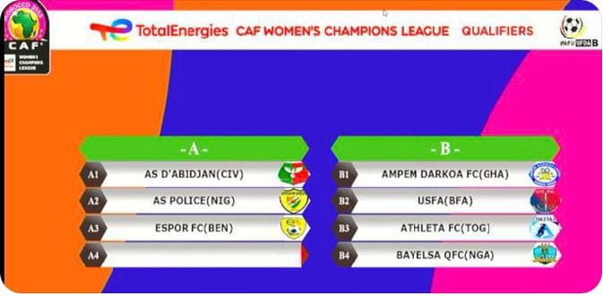 Les différentes équipes participantes au tournoi qualificatif de la Zone UFOA-B de la ligue africaine des champions féminines sont désormais fixées sur le démarrage effectif du tournoi après le tirage au sort effectuer le 20Juillet dernier. C’est par un courrier du directeur exécutif, que les différentes équipes ont été informées.