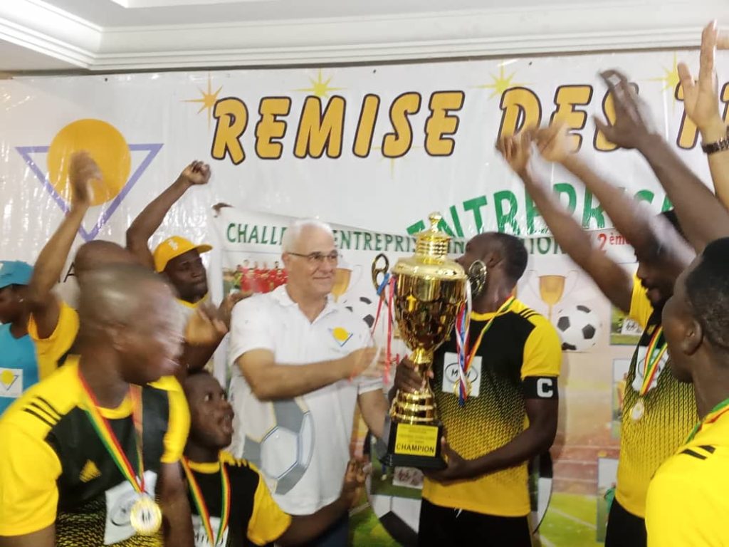 La douzième édition du tournoi challenges entreprises et institutions a connu son épilogue le dimanche 24 avril 2022 sur les installations de l’Université d’Abomey- Calavi (Campus) avec la rencontre de la finale. A l’issue de cette grande finale entre les différentes équipes finalistes (équipe de la Caisse Nationale de Sécurité Sociale (CNSS) vs MTN), c’est l’équipe de MTN amenée par Marcos Ecdon qui soulève dame coupe sur le score de 4buts à 2 au terme du temps règlementaire.