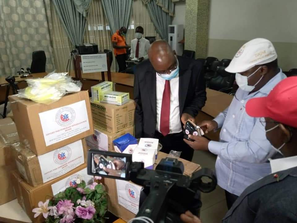 L’honorable Florentin Tchaou, Représentant Bénin de Femeraid International et de Malta Cross Foundation, son Directeur Exécutif, Basile Gbaguidi, et Sir Paul AKOUM, son Directeur de Protocole ont apporté dans l’après midi de ce Jeudi 23 Avril 2020 leur soutien aux efforts du Gouvernement du Président Talon plus que jamais déterminé dans la lutte contre la propagation du coronavirus dans notre pays, par un don de matériels médicaux et de protection composés de 4500 paires de gants, 3000 masques à 3 plis, 150 masques de type FFO MP 303, 250 masques FFP et de 20 Combinaisons de protection du personnel médical.