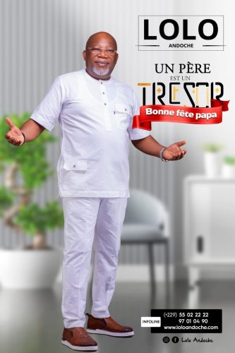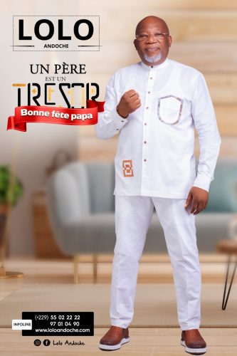 Avec Lolo Andoche, c’est toujours des surprises dans le foyer. La bonne ambiance de la fête des Papas c’est le cadeau qui porte la marque Lolo Andoche. Plus de soucis alors. Habillez vos conjoints avec les collections Lolo Andoche, c’est leur apporter le sourire, la bonne ambiance. Une offre spéciale pour retrouver le sourire perdu ou faire exploser la joie dans votre couple. Femme n’hésitez surtout pas. Faites un tour dans les boutiques de Lolo Andoche et vous ne rêvez pas déçu car c’est le top des tops. Pas que les femmes, les hommes ne sont pas épargnés puisqu’un clin d’oeil à Papa et au beau-père vous rapproche encore plus. Lolo Andoche vous offre une collection spéciale fête des pères pour l’occasion. Encore trois jours pour faire vos achats dans les boutiques Lolo Andoche. Vous aurez une panoplie de choix à votre portée. Passez le message chez vous et habillons-nous Lolo Andoche, c’est la fierté du Bénin. Faites-y un tour avant dimanche. Avec Lolo Andoche des surprises guidjoooooo.