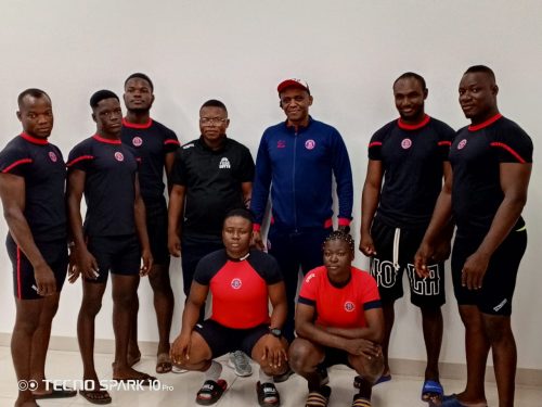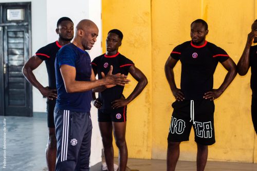 Démarré le 19 février 2024, le camp de perfectionnement des lutteurs et lutteuses béninois organisé aux profits de ces derniers dans le cadre des treizièmes jeux africains s’est achevé le 28 février 2024 sur une bonne note. Pendant deux semaines, l’expert de l’union mondiale de lutte Christian Danga a entretenu les différentes athlètes engagées dans cette compétition sur les différentes techniques en lutte olympique et aussi prodigué des conseils à ces derniers sur la gestion du stress avant les combats. Au soir de la clôture de ce camp de perfectionnement, les lutteurs ont reçu la visite des responsables du ministère des Sports constituées du directeur de cabinet Crépin Okouolou, du directeur des sports d’élites Bonaventure Codjia, et de la chargée d’études à l’organisation des événements au cabinet du ministre des Sports Roxane Kuaté. Venu s’enquérir du niveau de préparation des athlètes à quelques jours du démarrage de la compétition, la délégation a au nom du ministre des Sports Benoît Dato salué les différents efforts effectués par le bureau exécutif de la Fébélutte dirigé par Yves Azifan pour le développement de la lutte béninoise avant d’inviter les athlètes à faire de bonnes prestations afin d’hisser plus haut le drapeau béninois à Accra lors de ces jeux africains. Heureux de la visite des responsables du ministre des Sports, le porte-parole des athlètes a rassuré les dirigeants qu’ils feront de leur mieux pour ne pas les décevoir lors de cette compétition. « Nous ferons tout pour honorer le drapeau béninois » a-t-il déclaré. Abondant dans le même sens que les athlètes, le premier responsable de la lutte béninoise a remercié du fond du cœur les responsables du ministère des Sports notamment le ministre Benoît Dato qui a dépêché ces collaborateurs pour venir prendre des nouvelles de ces lutteurs et lutteuses béninois « ces athlètes que vous voyez ce jour sont prêts et sont bien aguerri pour valablement défendre les couleurs du drapeau national » a –il signifié. Signalons que la délégation béninoise a pris départ le mercredi 6 mars 2024 et est composée de six athlètes dont la nomenclature se compose comme suit :