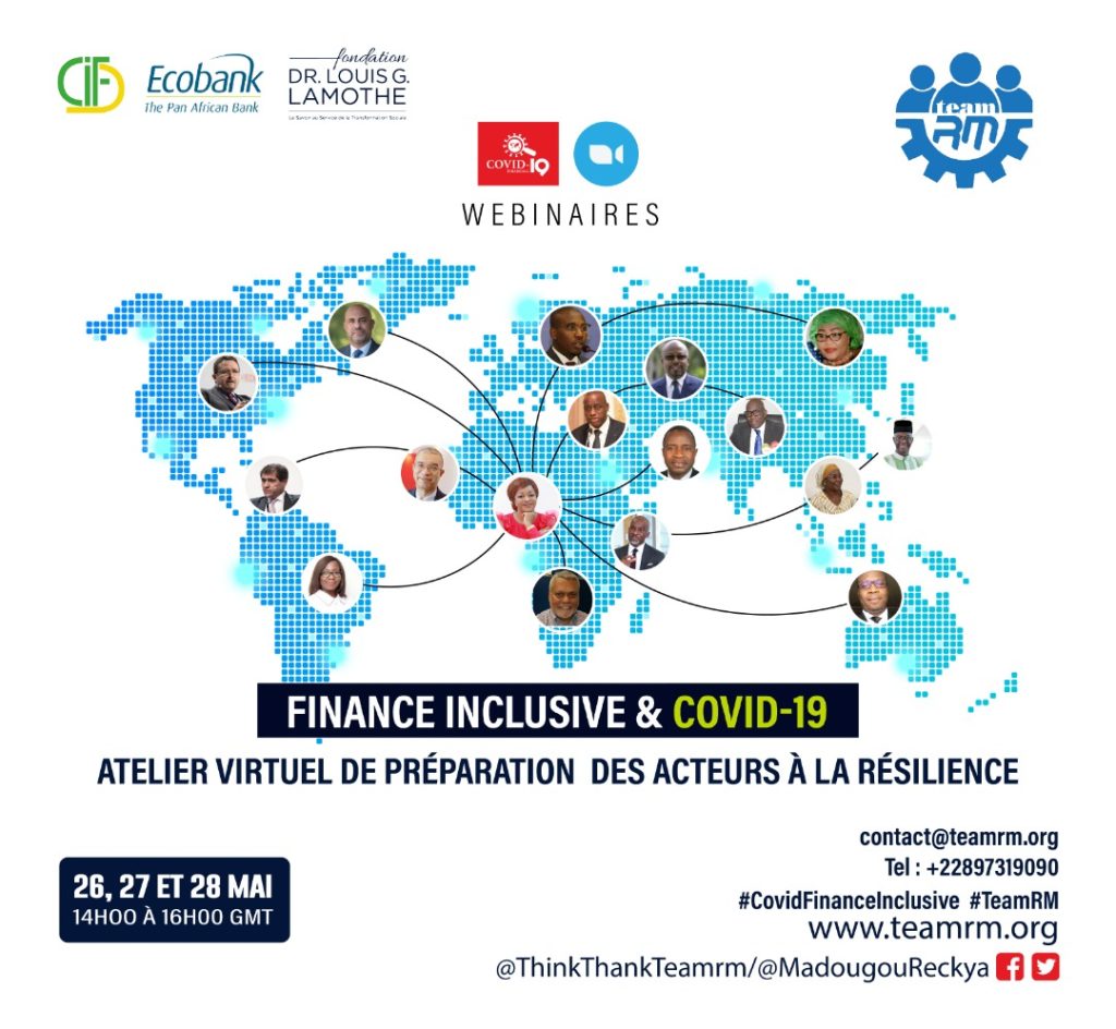 De ce 26 au 28 mai prochain, le Think & Do Tank Team RM en partenariat avec le Groupe panafricain Ecobank, la Fondation Lamothe (Haïti) et la Confédération des Institutions Financières pour l’Afrique de l’Ouest (CIF) organisent un webinaire international afin de fournir des solutions et des idées pour la résilience, la solidité et durabilité des économies africaines face au Covid-19. C’est dans un contexte marqué par la pandémie de la Covid-19, certains intellectuels du continent africain estiment qu’il est très urgent de construire des schémas de retour à la normale et des mécanismes de résilience pour les pays les plus exposés. Ainsi, En appui aux Chefs d’Etat et de Gouvernement pour la riposte au Covid-19, ce séminaire réunira une trentaine de personnalités et d’experts de l’économie et de la finance africaine au cours de panels de haut niveau. Les débats seront principalement animés par l’experte internationale en finance inclusive et promotrice du Think & Do Tank RM et initiatrice de l’activité. Selon les organisateurs, ce séminaire est le premier d’un nouveau cycle de débats et de réflexions entamé par le Think & Do Tank Team RM. La team RM est, par ailleurs une plateforme réflexive, animée par des citoyens africains et des amis de l’Afrique s’intéressant aux politiques de développement et épousant la vision d’économie inclusive et solidaire, orientation chère à l’initiatrice du Think Tank, madame Reckya Madougou. Egalement ouvert aux jeunes citoyens du monde amoureux de l’Afrique, la Team RM se veut être une force de propositions et offre un espace de réflexions et d’échanges tourné vers la production, la diffusion d’idées et des expérimentations. Ces principaux domaines sont : la croissance transformatrice, l’inclusion financière, l’égalité genre et la libération du potentiel de la jeunesse.