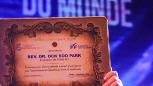 Heureux d’avoir rencontré le fondateur de l’ong IYF, le révérend pasteur Ock Soo Park, le professeur Gérard Gbaguidi, fondateur de l’Ecole supérieure de génie civil Verechaguine A.K de Cotonou a salué les efforts consentis par l’organisation non gouvernementale pour le développement de la jeunesse béninoise. « C’est une organisation qui travaille pour l’épanouissement de la jeunesse béninoise et je passe par cette grande conférence pour rendre un hommage mérité au révérend pasteur Ock Soo Park pour les actions qu’ils posent au Bénin. Il y a des situations qui nous amènent à perdre de vues notre objectif et je crois qu’avec cette ONG que la jeunesse béninoise, à travers les écritures saintes, va devenir des personnes sur qui la société peut compter. Que les graines de vos œuvres portent beaucoup de fruits pour le développement de notre pays » a-t-il signifié.