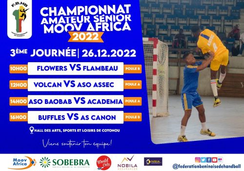 25 décembre 2022 Handball/Championnat Amateur Senior Moov Africa: Résultats et affiches de la deuxième journée et troisième journée connus Post navigation Précédent ATHLÉTISME/ Fin du camp du projet Sport au Féminin : Les athlètes partent de Porto-Novo les bras chargésSuivant Université de Parakou: Oussou Kougblénou nouveau docteur en sociologie et développement rural Voir aussi Actualités La Une Médias et inclusion financière au Bénin Le RJCIF créé, Adam HOUETENON élu Président 12 décembre 2025 Actualités Sports CAN MAROC 2025 : les 28 Guépards retenus par Rohr ! 12 décembre 2025 Actualités La Une Politique LES MINISTRES DES AFFAIRES ÉTRANGÈRES DU NIGÉRIA ET DU BÉNIN TIENNENT UNE CONFÉRENCE DE PRESSE CONJOINTE SUR LE RÉTABLISSEMENT DE LA GOUVERNANCE DÉMOCRATIQUE AU BÉNIN ET LA SÉCURITÉ RÉGIONALE 12 décembre 2025