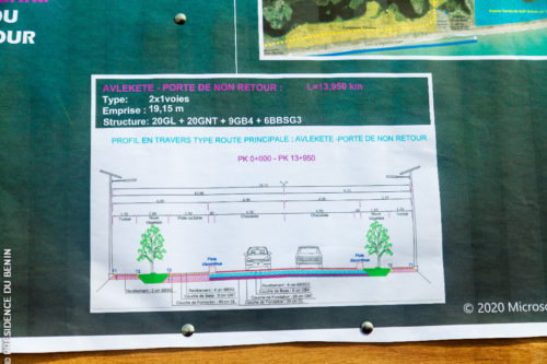 Le projet d’aménagement et de bitumage de la route des pêches phase 2 se décompose en plusieurs sections comme l’a rappelé le Directeur général de la Société des Infrastructures Routières du Bénin Serge AHOUANDOGBO à cette cérémonie de lancement officiel. Il s’agit d’un projet intégré qui comprend : les tronçons : Adounko- Avlékété long de 7, 43 kilomètres ; Avlékété-Porte du non-retour long de 13,95 kilomètres ; Adounko-Cococodjio long de 4,93 kilomètres et porte du non-retour-bouche du roi long de 2,36 kilomètres. Ce projet comprend aussi l’aménagement et le bitumage de la corniche Est de Cotonou qui va de l’ancien pont de Cotonou et fini à la clôture de l’hôtel PlM Alédjo en longeant la lagune et longue de 4,10 kilomètres. Au total, il s’agira de la construction d’infrastructures routières d’une longueur totale d’environ 32,77 kilomètres avec 03 ouvrages de franchissement, des aires de stationnement, de noues végétales, de pistes cyclables.