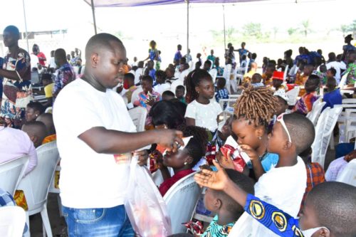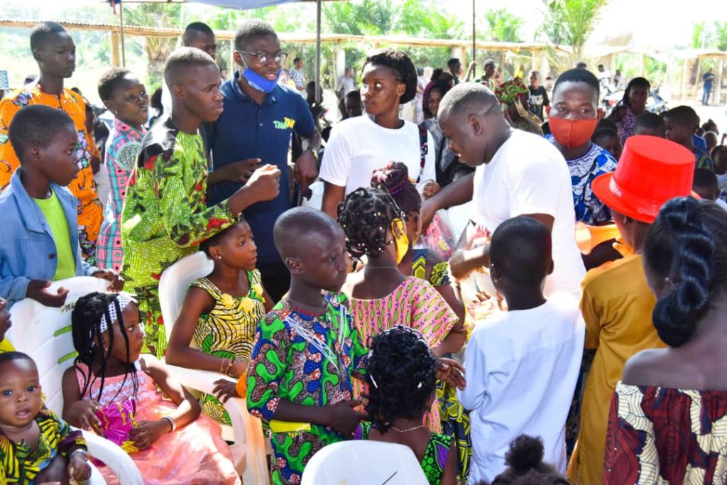 C’est sous l’œil vigilent de la Marraine Madame Sabine FOURN 2ème Adjointe au Maire de Ouidah, du Parrain Monsieur Paul MÈDIGNI PDG de la Ferme du Gouverneur, Autorités locales, invités, Parents et enfants que s’est déroulé la 2ème Édition de la Noël des Enfants autour des jeux Sains au Akadjamè Adjovi-Codji dans l’arrondissement de PAHOU commune de Ouidah. Ils étaient environ 500 enfants à prendre part à cette journée récréative et de divertissement qu’organise chaque année Monsieur Urbain Houndagnon, Président de L’Union des Graphistes du Bénin. Restauration, animation, divers jeux et remise de Cadeaux. Voilà le menu qui a meublé cette journée. A en croire croire le promoteur c’est une journée caritative qui permet de donner la Joie au cœur aux enfants d’Akadjamè. C’est le lieu de remercier les partenaires l’association de développement Mizedaga, La Fondation Hilaire Tchiwanou, Yaourt Dolait, Chips Yoyo, Matanti, la Ferme du Gouverneur, Youki, Hôtel le Baron, le Complexe Scolaire le Triangle Divin, et Natzah qui n’ont ménagé aucun effort pour nous accompagner.