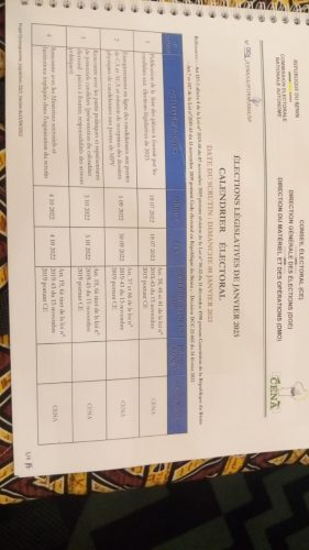 En application aux dispositions du code électoral en son article 59 et du décret 2020-564 du 25 Novembre 2020 portant modalités d’élaboration du calendrier électoral et dans la quête de la transparence autour des élections législatives du 08 Janvier 2023, la CENA a rendu public le calendrier électoral des élections membres de l’Assemblée Nationale pour la 9è mandature. En effet, c’est au cours d’une cérémonie fort simple qui a connu la présence de toutes les parties prenantes dans le processus électoral devant conduit aux législatives du 08 Janvier prochain que la Commission Électorale Nationale Autonome a mis à la disposition de tous les acteurs du processus électoral ainsi que l’opinion nationale et internationale, le calendrier électoral des législatives du 08 Janvier 2023.