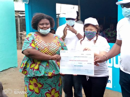 L’ambassadrice de l’Afrique du Sud près le Bénin, madame Ruby Marks émue de voir autant d’amour manifesté a remercié la Présidente du foyer Augustine pour son dévouement au profit de la cause des enfants. Elle a rappelé par ailleurs l’engagement centenaire de Sanlam Assurance qui est le cœur de l’Afrique du Sud et dit qu’au nom de l’illustre Nelson Mandela, le foyer d’accueil Augustine sera désormais soutenu dans ses activités. Et c’est dans une allégresse et un bonheur débordant que, associée à la Directrice Sanlam Assurance vie, au Directeur Sanlam Assurance non vie, Edmond Bossou et au CA de Tohouè (Commune de Sèmè Kpodji), Alfred Toyétonmè, un cheque d’un million (1.000.000) de FCFA du Groupe Sanlam Assurance a été remis à la Présidente du foyer Augustine pour la soutenir dans son initiative.