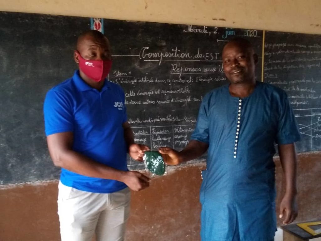 Accompagné le gouvernement béninois dans la lutte contre la pandémie du covid -19, tel est l’objectif de la JCI Abomey – Calavi Pléiade en initiant le projet STOP COVID -19. Un projet qui a consisté à mettre à la disposition des écoliers et élèves de l’arrondissement de kpanroun dans la commune d’Abomey –calavi 750 masques de protection afin de lutter contre le coronavirus qui sévit depuis près de trois mois dans le pays.