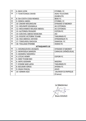 Lisez ci dessous la liste complète les 45 joueurs présélectionnés par Adoula Bruno Goudjo