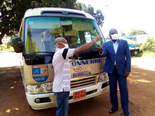 La maire de Bohicon met gracieusement un bus flamand neuf à la disposition de l’AS Tonnerre de la ville carrefour. En effet, le 1er adjoint au maire Isidore AGNOUN BASSO a remis, ce mardi 26 mai 2020, ce bus au président de l’AS Tonnerre de Bohicon, César AGBOSSAGA, pour les déplacements des joueurs. ??Au nom du maire Luc ATROKPO et du conseil communal, nous vous remettons les clés de ce bus flambant neuf pour les déplacements des joueurs de l’équipe de l’AS Tonnerre, en vue d’hisser le club phare de Bohicon sur l’échiquier footballistique national et international??, a laissé entendre Isidore AGNOUN BASSO, représentant du maire Luc ATROKPO.