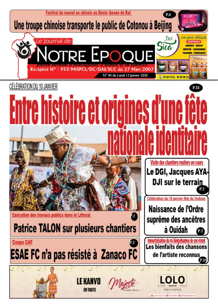 13 janvier 2020 [download id= »2384″] Tags: La Une Post navigation Précédent Emmanuel Zossou ouvre les travaux du colloque scientifiqueSuivant Patrice TALON était sur plusieurs chantiers Laisser un commentaire Annuler la réponseVous devez vous connecter pour publier un commentaire. Voir aussi Actualités La Une Médias et inclusion financière au Bénin Le RJCIF créé, Adam HOUETENON élu Président 12 décembre 2025 Actualités La Une Politique LES MINISTRES DES AFFAIRES ÉTRANGÈRES DU NIGÉRIA ET DU BÉNIN TIENNENT UNE CONFÉRENCE DE PRESSE CONJOINTE SUR LE RÉTABLISSEMENT DE LA GOUVERNANCE DÉMOCRATIQUE AU BÉNIN ET LA SÉCURITÉ RÉGIONALE 12 décembre 2025 Actualités La Une JIV 2025 : L’AnpE et la PNOVEJ célèbrent les volontaires sous le signe de l’engagement citoyen 12 décembre 2025