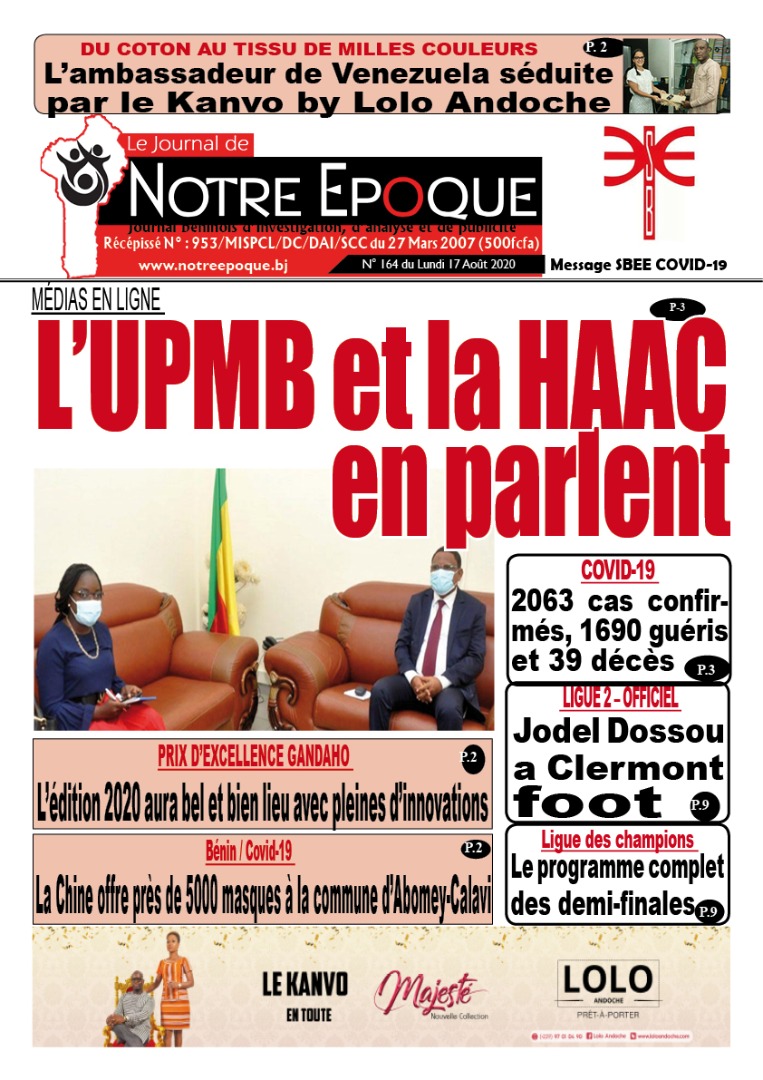17 août 2020 Télécharger : Post navigation Précédent Trump signe un décret forçant le chinois ByteDance à se séparer de TikTok (Le président américain formalise les menaces maintes fois répétées.)Suivant La CEDEAO rappelle sa ferme opposition à tout changement politique anticonstitutionnel Laisser un commentaire Annuler la réponseVous devez vous connecter pour publier un commentaire. Voir aussi Actualités La Une Médias et inclusion financière au Bénin Le RJCIF créé, Adam HOUETENON élu Président 12 décembre 2025 Actualités La Une Politique LES MINISTRES DES AFFAIRES ÉTRANGÈRES DU NIGÉRIA ET DU BÉNIN TIENNENT UNE CONFÉRENCE DE PRESSE CONJOINTE SUR LE RÉTABLISSEMENT DE LA GOUVERNANCE DÉMOCRATIQUE AU BÉNIN ET LA SÉCURITÉ RÉGIONALE 12 décembre 2025 Actualités La Une JIV 2025 : L’AnpE et la PNOVEJ célèbrent les volontaires sous le signe de l’engagement citoyen 12 décembre 2025