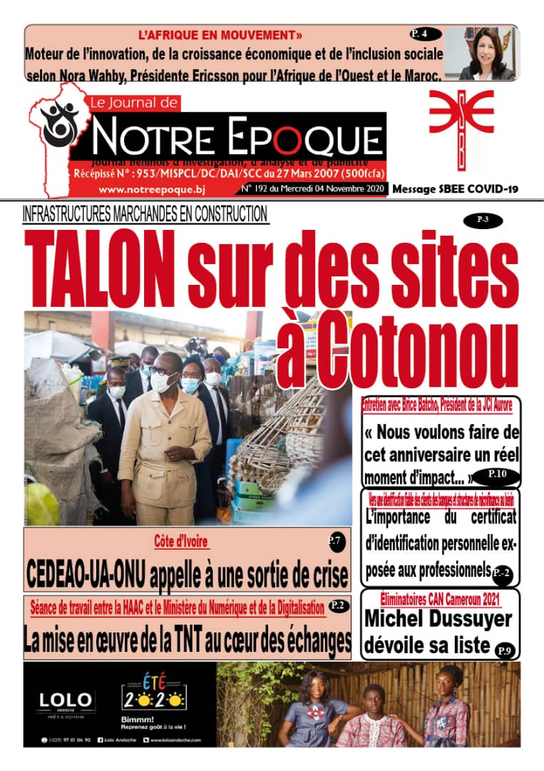 5 novembre 2020 Télécharger : Notre Epoque 192 du Mercredi 05 Novembre 2020 Post navigation Précédent « Nous voulons faire de cet anniversaire un réel moment d’impact… »Suivant Un atelier de l’UPMB et de la FES pour valider le document de plaidoyer Laisser un commentaire Annuler la réponseVous devez vous connecter pour publier un commentaire. Voir aussi Actualités La Une Médias et inclusion financière au Bénin Le RJCIF créé, Adam HOUETENON élu Président 12 décembre 2025 Actualités La Une Politique LES MINISTRES DES AFFAIRES ÉTRANGÈRES DU NIGÉRIA ET DU BÉNIN TIENNENT UNE CONFÉRENCE DE PRESSE CONJOINTE SUR LE RÉTABLISSEMENT DE LA GOUVERNANCE DÉMOCRATIQUE AU BÉNIN ET LA SÉCURITÉ RÉGIONALE 12 décembre 2025 Actualités La Une JIV 2025 : L’AnpE et la PNOVEJ célèbrent les volontaires sous le signe de l’engagement citoyen 12 décembre 2025
